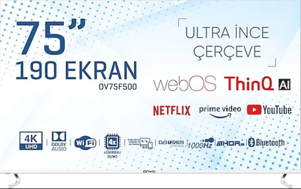 onvo 190 cm 75inç WebOS Ultra HD TV Ekranı OV75F500
