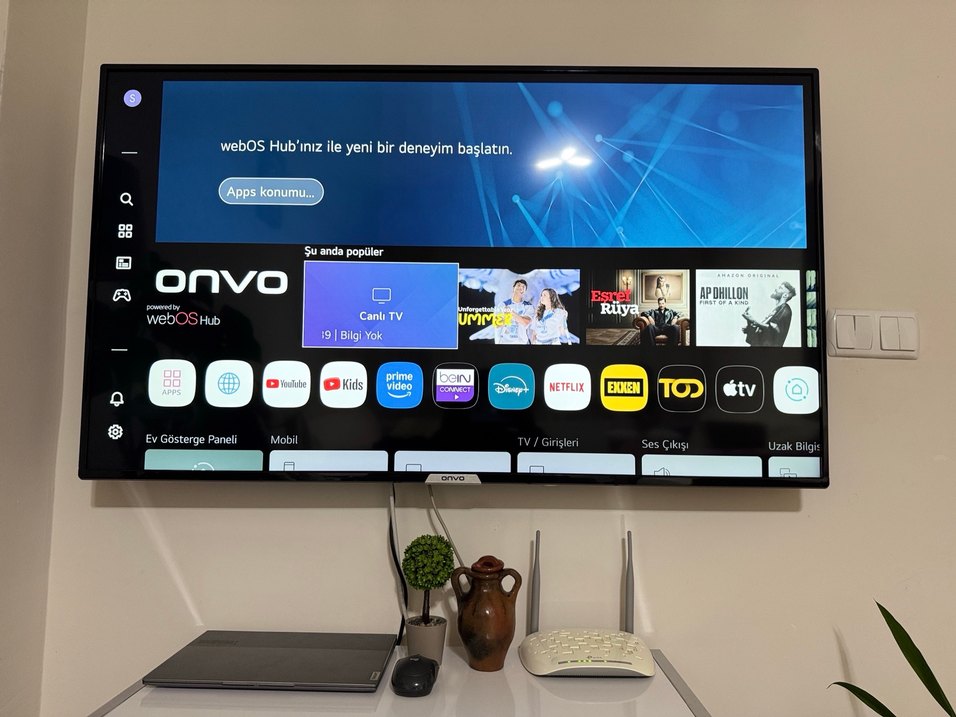Tertemiz, sorunsuz ve kutusuyla birlikte Onvo OV50500 model 50 inç (127 Ekran) 4K Ultra HD televizyonumu satıyorum. Televizyonun en büyük artısı, birçok pahalı markada (LG gibi) bulunan webOS işletim sistemine sahip olmasıdır. Bu sayede menü geçişleri ve uygulama kullanımı inanılmaz akıcı ve hızlıdır. Diğer önemli özelliği ise fotoğraflarda gördüğünüz Sihirli Kumandasıdır. Bu kumanda ile; • Bilgisayar faresi gibi ekranı yönetebilir, • Tekerleği ile kolayca gezinebilir, • Üzerindeki mikrofonla sesli komut verebilirsiniz. Başlıca Özellikleri: • Model: Onvo OV50500 • Ekran: 50 inç (127 cm) 4K Ultra HD • Smart TV: Hızlı ve Stabil webOS (ThinQ AI) • Uygulamalar: Netflix, YouTube, Prime Video, Disney+, Exxen, BluTV ve daha fazlası yüklü. • Bağlantı: Dahili Wi-Fi, Bluetooth • Performans: 4 Çekirdekli İşlemci • Ses: Dolby Audio • Diğer: HDR Desteği, Dahili 4K Uydu Alıcısı Hiçbir ölü piksel, çizik veya sorunu yoktur. Kutusu mevcuttur. Yeni TV aldığım için ihtiyaç fazlası olmuştur.