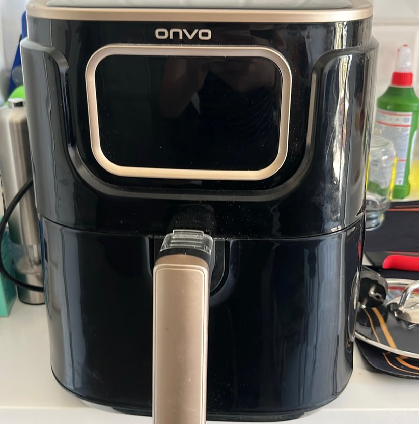 Onvo siyah fritöz ve ızgara, ön tutma koluyla kullanımı kolay şık koyu tasarıma sahiptir. Kızartma ve ızgara için çok yönlü pişirme sunar.