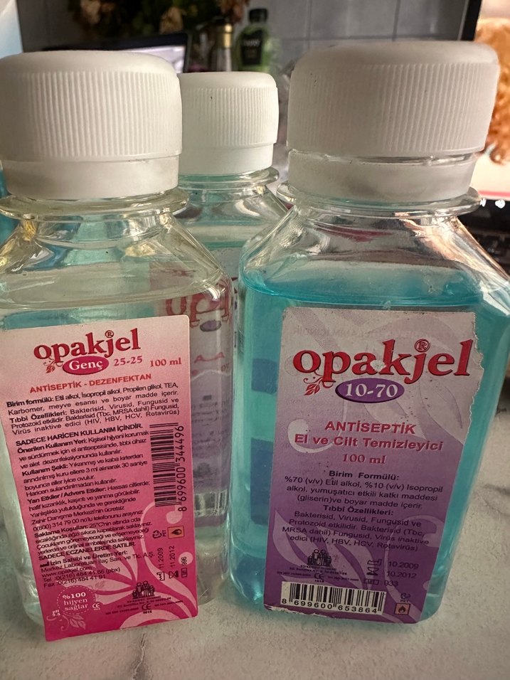 Opakjel antiseptik cilt temizleyici, 100 ml şişede, cilt temizliği ve dezenfeksiyonu için uygundur. Farklı kokularda iki formül mevcuttur. İkili fiyat