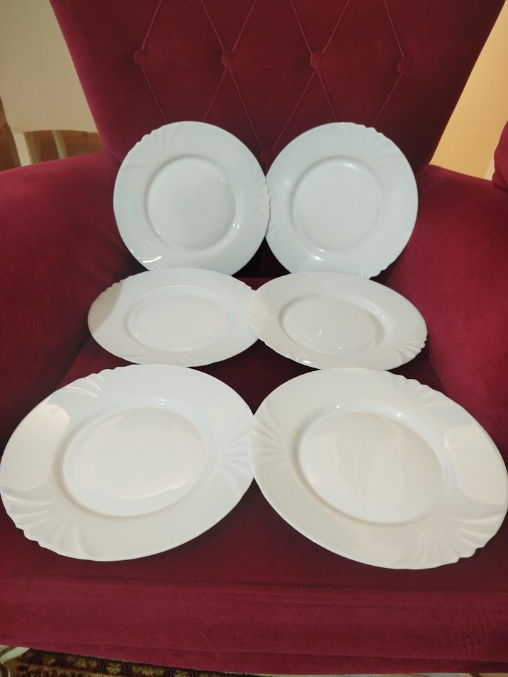 hiç kullanılmamış 6 adet Opal servis tabakları ister kuru yemek ister pasta tabağı olarak kullanılabilir boyları 25 cm