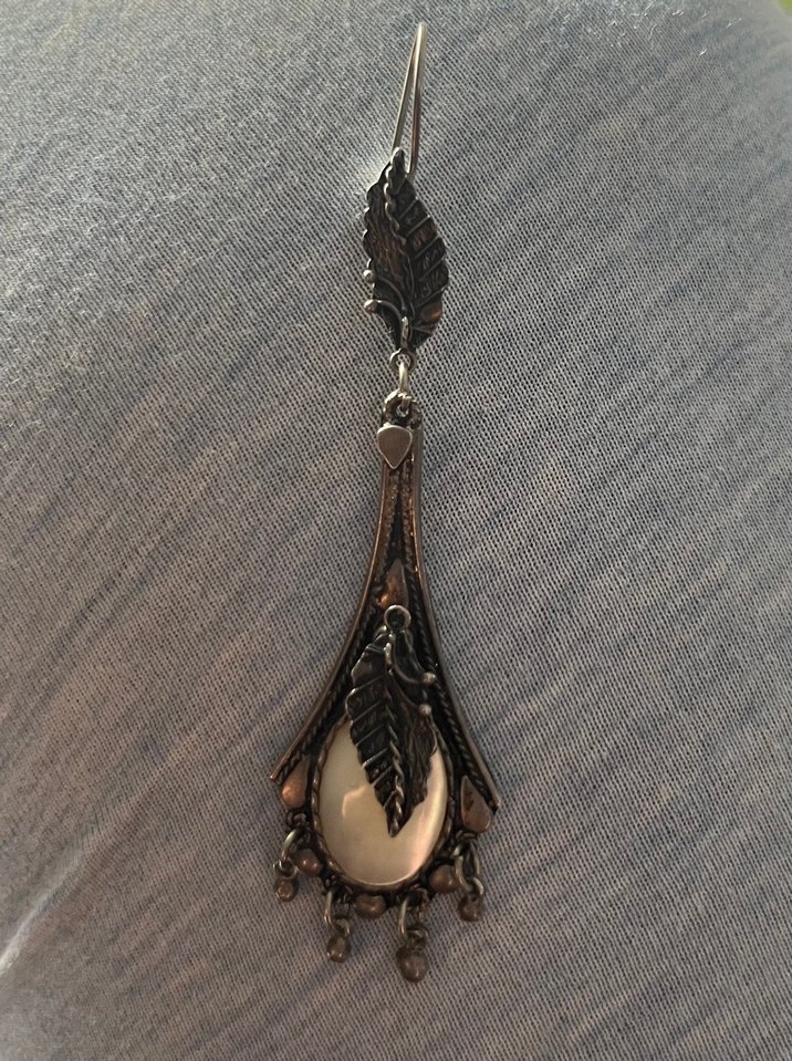 Uzun, yaprak desenli ve opal taşlı vintage bohem kadın küpe çift değildir tek küpe 1 adet✨