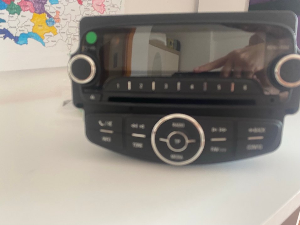 Radyo, ton ve medya fonksiyonları için düğmelerle siyah müzik sistemi kumandası, ortasında dairesel bir düğme ve numaralı ön ayarlar bulunur. Sıfır ürün jelatini üstünde kabloları ile özel köpüklü kutusunda gelecek çalışır durumda hiç bir kusuru çiziği eziği yok