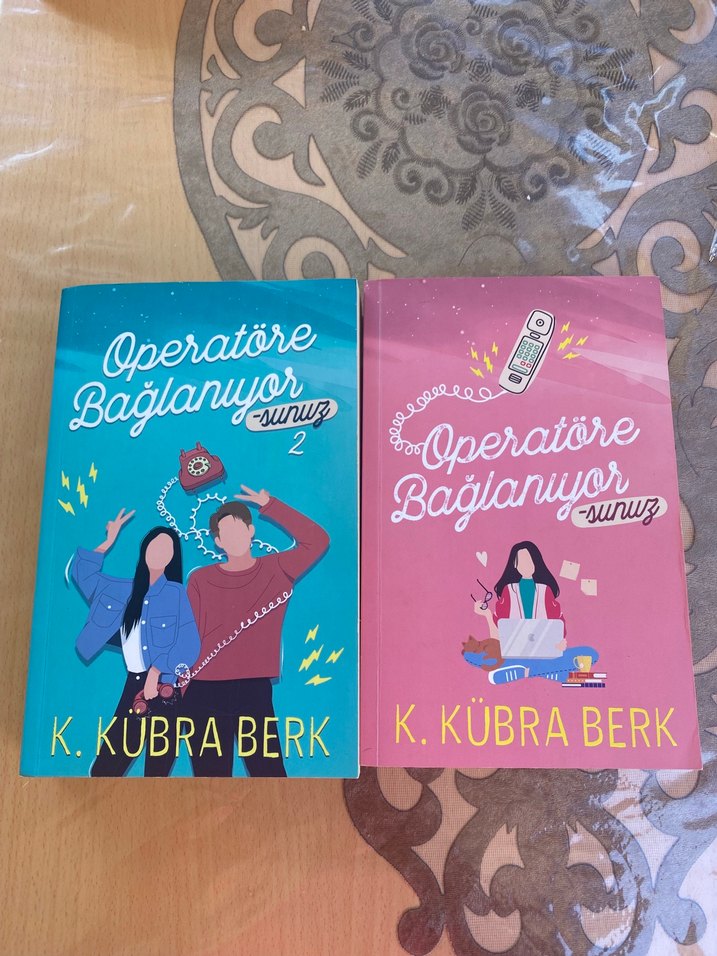 K. Kübra Berk'in 'Operatöre Bağlanıyor' adlı iki romanı. Pembe ve mavi kapaklarda, karakter ve telefon illüstrasyonları bulunur. Tertemiz 2 kitap.Dileyene tek olarakta satılabilir.Tek fiyatı 150 tl.