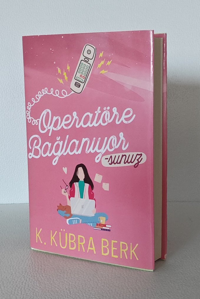 K. Kübra Berk'in "Operatöre Bağlanıyorsunuz" kitabı, pembe kapakta laptoplu bir kadın ve telefon illüstrasyonu içerir.