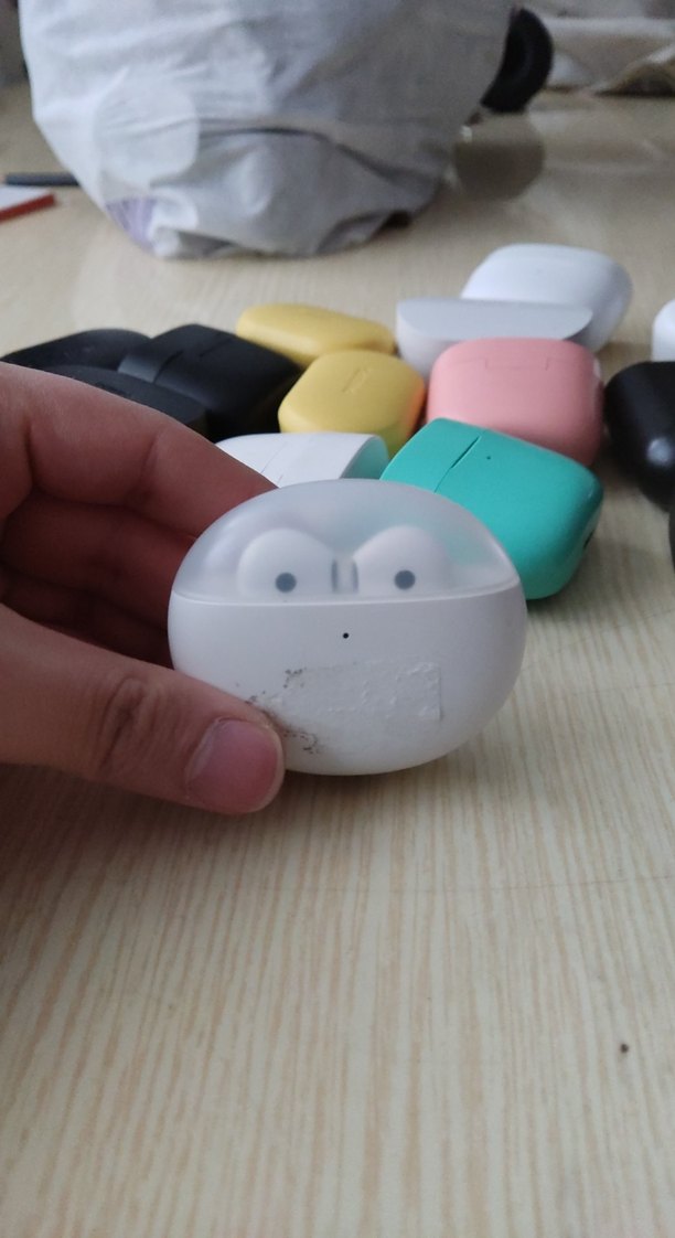Beyaz renkli, kompakt tasarımlı kablosuz kulaklık şarj kutusu, kolay taşınabilir ve saklanabilir.