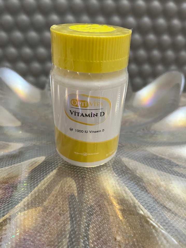OptiMed Vitamin D 1000 IU dozajında, sarı kapaklı parlak ambalajda toz formunda. Kullanılmamış ambalajlı ürün trandyol kullanıcı yorumlarına bakıp bilgi alabilirsiniz