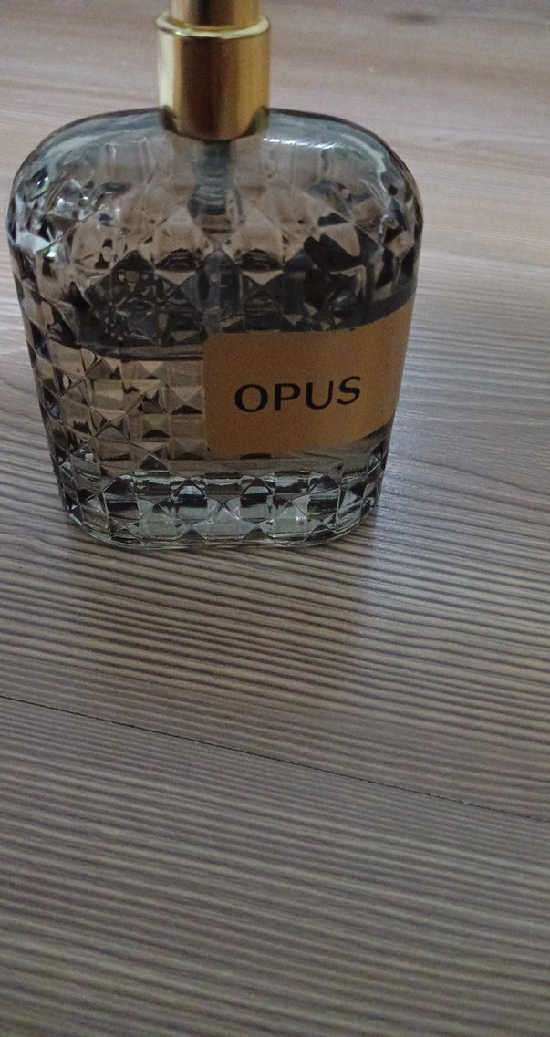 OPUS kadın parfümü, desenli cam şişesi ve altın renkli etiketiyle şık bir koku deneyimi sunar.