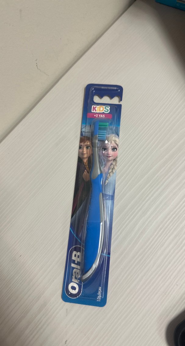 Oral-B Frozen çocuk diş fırçası, 3 yaş ve üzeri için yumuşak kıllara ve rahat tutuşa sahiptir.
