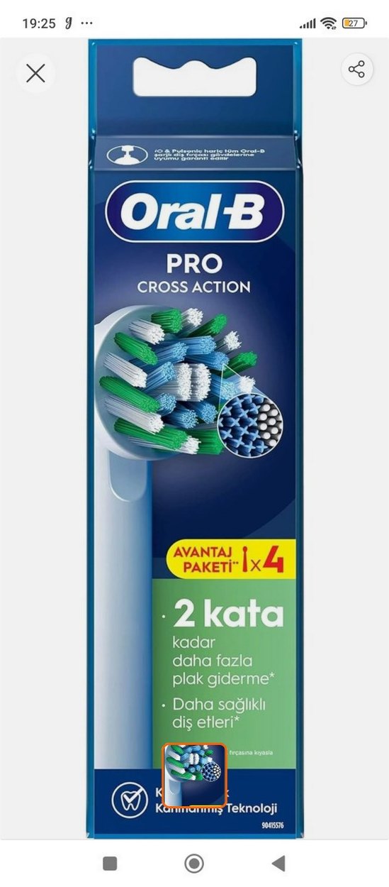 Oral-B Pro CrossAction yedek diş fırçası başlıkları, plak giderimini 2 kata kadar artırır ve daha sağlıklı dişler sağlar. 4'lü paket.