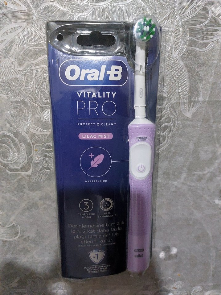 Oral-B Vitality Pro mor elektrikli diş fırçası, 3 fırçalama modu ve plak korumasıyla derin temizlik sağlar. Nazik masaj modu ve değiştirilebilir başlık içerir.