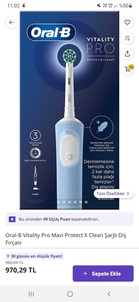 Oral-B Vitality Pro mavi şarjlı diş fırçası, derinlemesine temizlik için 3 modlu, diş etlerini koruyan ve plakları 2 kat fazla temizleyen fırça başlığı ile birlikte gelir.