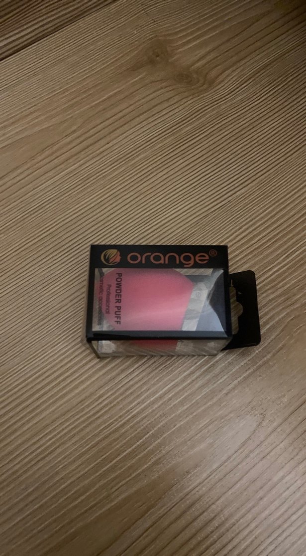Orange markalı pembe pudra süngeri, pürüzsüz ve eşit uygulama için uygundur.