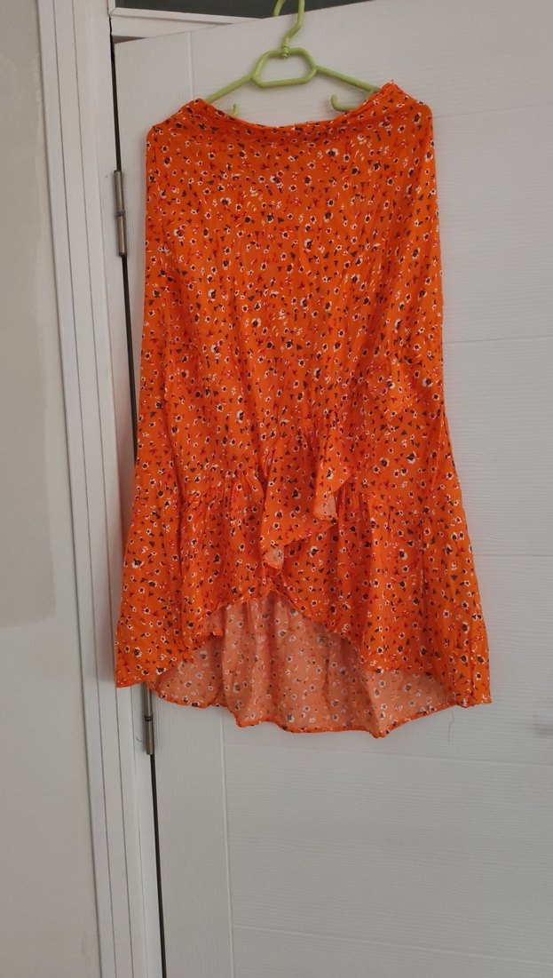 Oranj Renkli Volanlı Uzun Bohem Etek