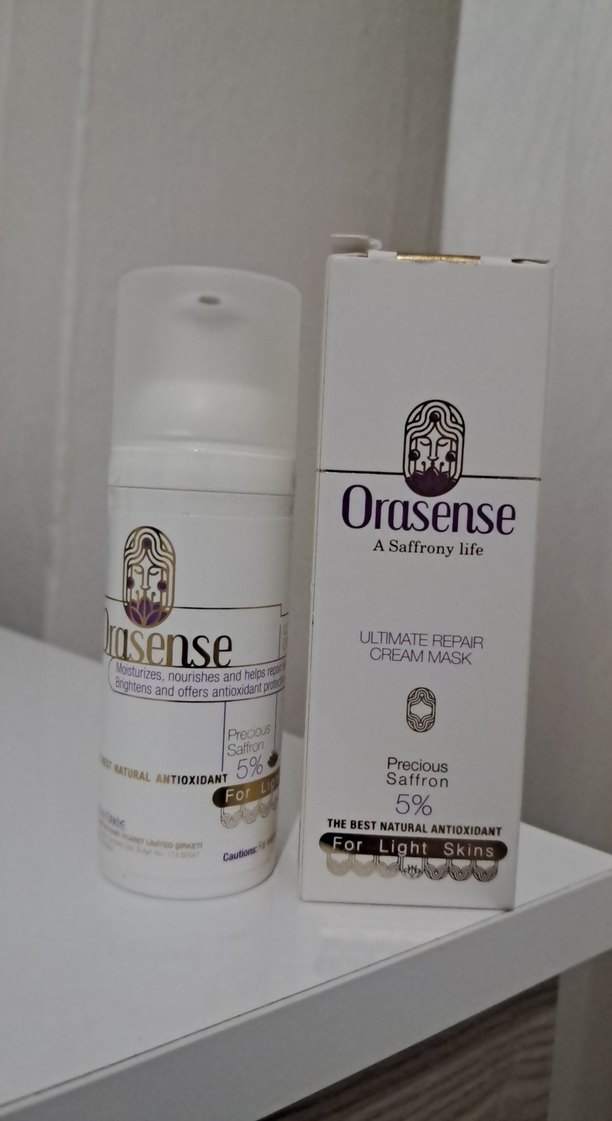 Orasense Safran özlü onarıcı krem maskesi %5 safran içerir, hafif ciltler için doğal antioksidan sağlar, nemlendirir ve besler.