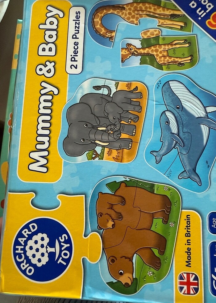 Orchard toys ilk puzzle, Mummy and Baby, 6 adet 2li puzzle içeriyor, iyi durumda. Hafif kusurları var. 18 ay + için uygun.