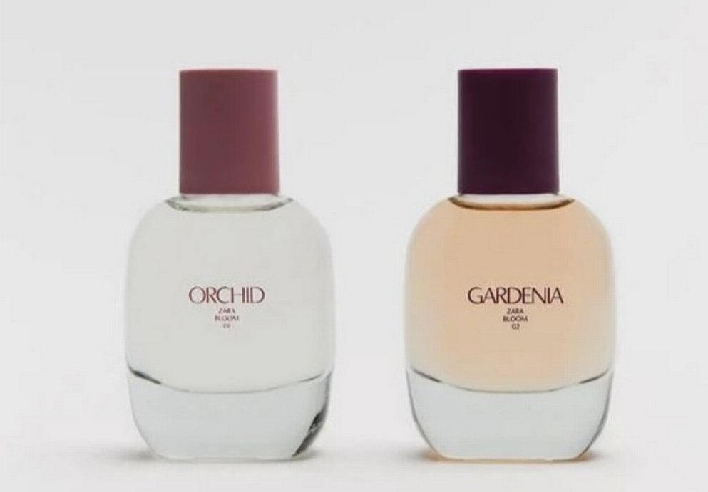 Zara Bloom koleksiyonundan Orchid ve Garde kadın parfümleri, renkli kapaklı sade cam şişelerde şık kokular sunar.