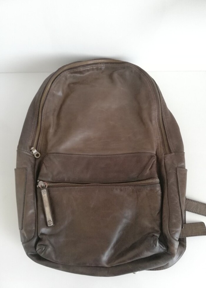 Orijinal Hakiki Deri ORCİANİ Sırt Çantası. Son resimde gördüğünüz gibi içine yeşil boya dökülmüştür. Onun dışında hiçbir sorunu yoktur.