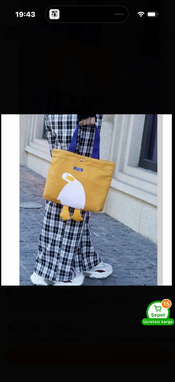 Çok ama çok sevimli bir çanta. Çok kaliteli ve eğlenceli. Ne büyük ne küçük, günlük kullanım için uygun. Ördeğin sarkan bacakları çok şirin bir hava katıyor. Her yaştan insan kullanabilir. Tarz olmak ve farklı görünmek isteyenlere #ördek #totebag #çanta #avrupa #vintageçanta #bezçanta #kumaşçanta #duck