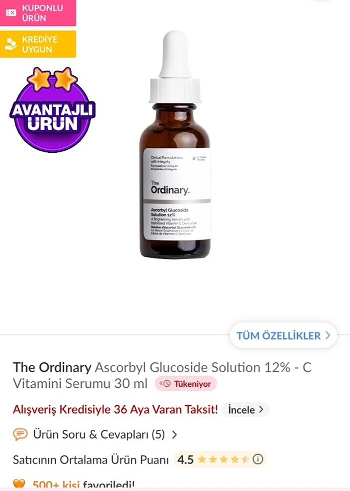 Ordinary ascorbyl c vitaminli serum
