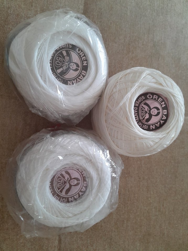 3 adet Ören bayan hiç kullanılmamış dantel ipi 1 adet 50 2 adet 70 numara 70 numaralardan biri krem