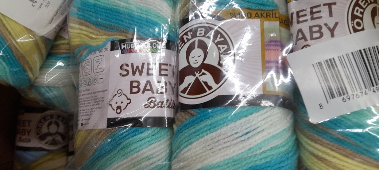 Mavi, beyaz ve bej tonlarında, yumuşak dokulu, bohem tarzda el işleri için uygun renkli örgü ipi.