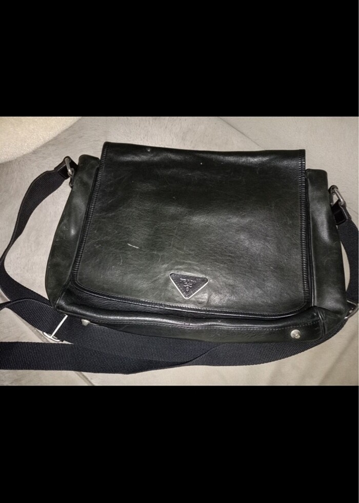 Prada deri postacı çanta hatasız tertemiz derisi içi kadife birtek altındaki tek demir ayağı yok kayıp Unisexm kullanıma uygun