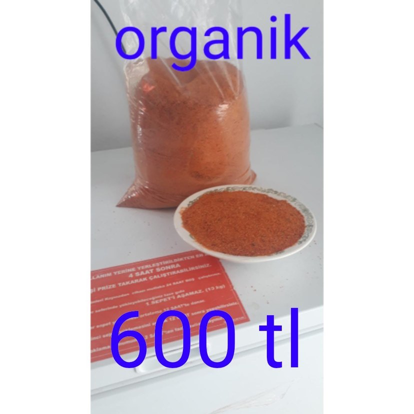 Parlak kırmızı renkte, organik toz. 600 TL fiyatla, poşet içinde ve tabakta sunulmaktadır. ️