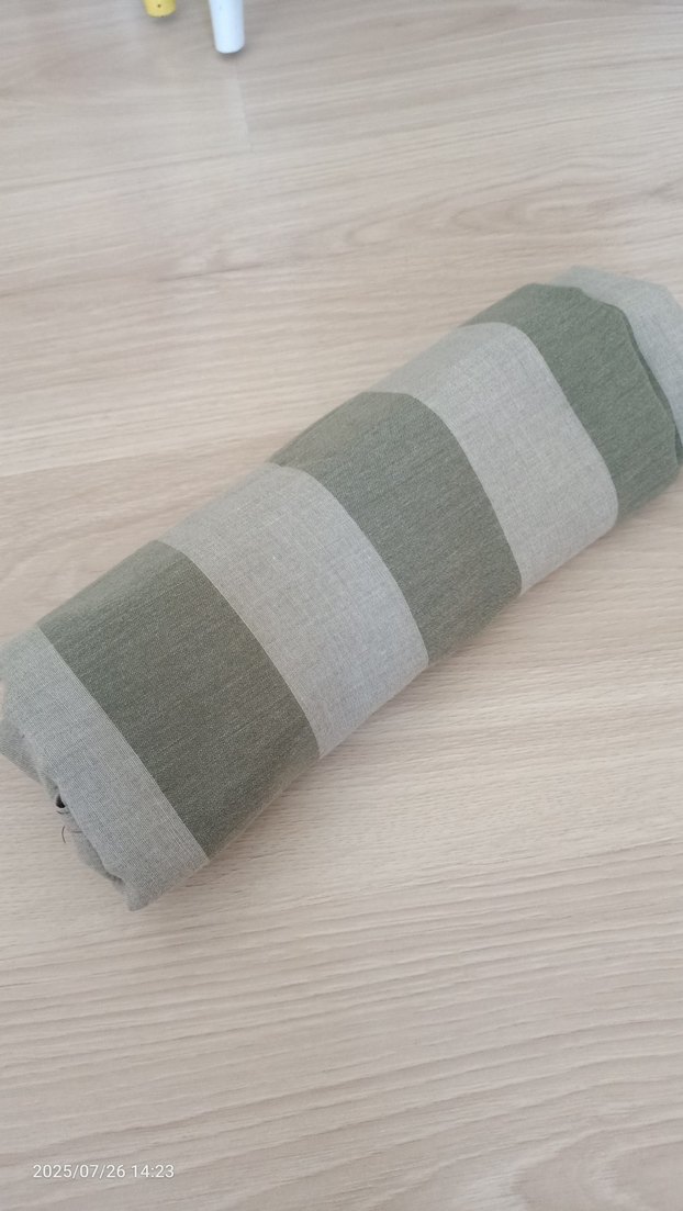 Yumuşak pamuk kumaştan, haki ve küf yeşili çizgili, drapeli bohem tarzda şal. #Şal #Pamukşal . Şal birkaç kez kullanıldı. Sıfır ayarında. Organik pamuk. Yeşil