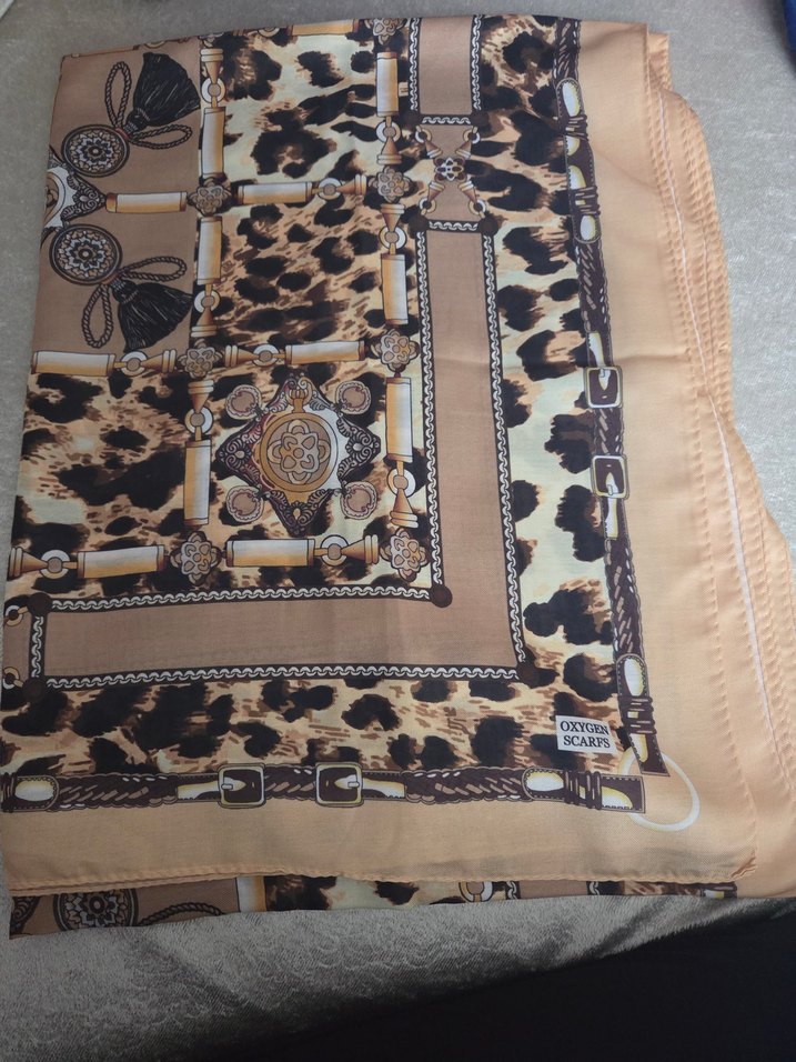 organik scarf Zincir Detaylı Parlak Kahverengi pamuk Kadın şal