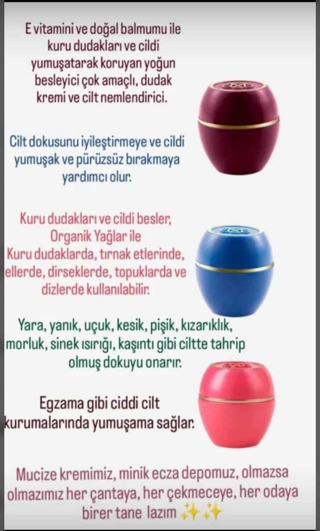 Organik yağlar içeren bu krem, kuru dudakları ve cildi yumuşatarak besler. Yaralar, yanıklar, kesikler ve egzama gibi cilt sorunlarında kullanılır, cildi onarır ve pürüzsüz bırakır.