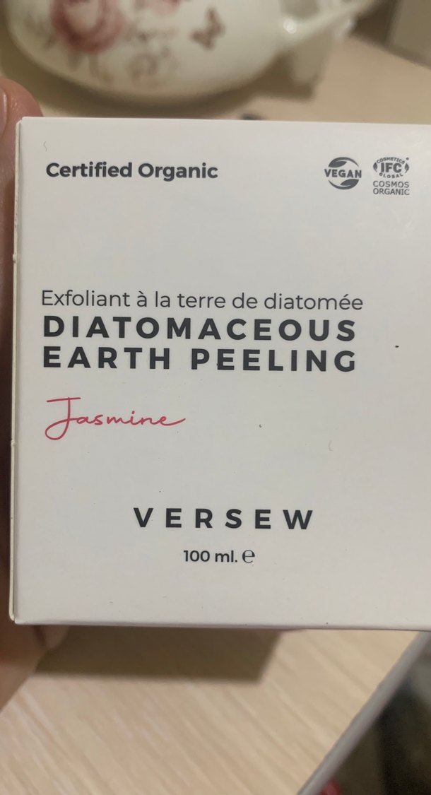 VERSEW markasının organik, vegan ve çevre dostu yasemin kokulu diatom toprağı peelingi, 100ml.