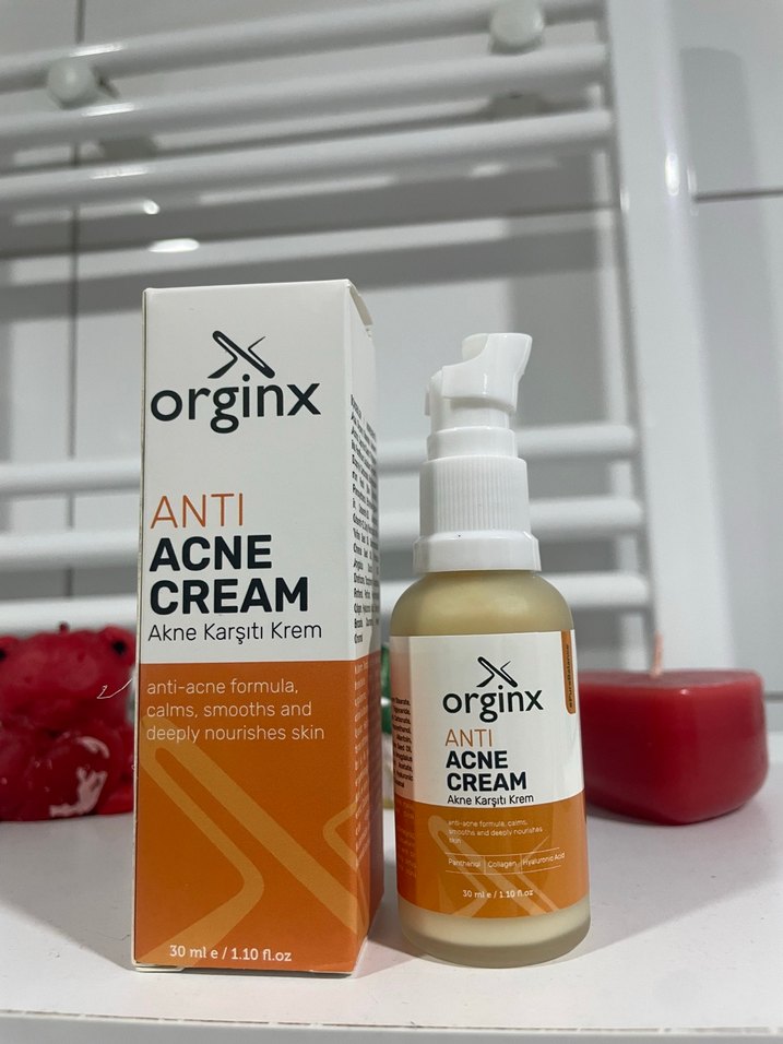 Orginx Anti Akne Krem, akne karşıtı formülü ile cildi yatıştırır, pürüzsüzleştirir ve derinlemesine besler. 30 ml pompalı şişede.