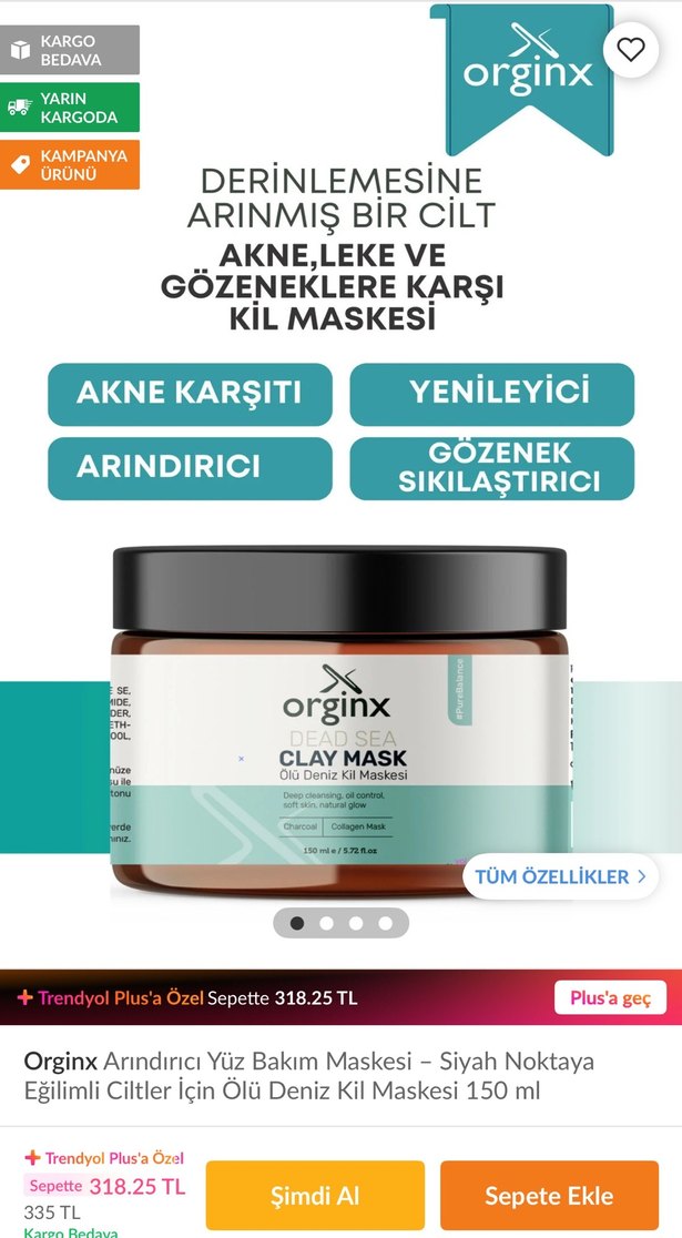 Orginx Ölü Deniz Kil Maskesi, kömür ve kolajen içerir, 150 gram, cilt bakımı için uygundur. Hiç kullanılmadı iyice inceleyerek alınız iade yoktur