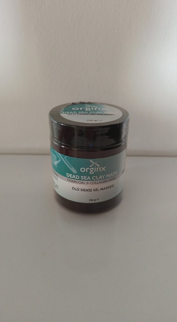 Orginx Ölü Deniz Kil Maskesi, kömür ve kolajen içerir. Cildi derinlemesine temizler ve besler. 150g kutuda sunulur.