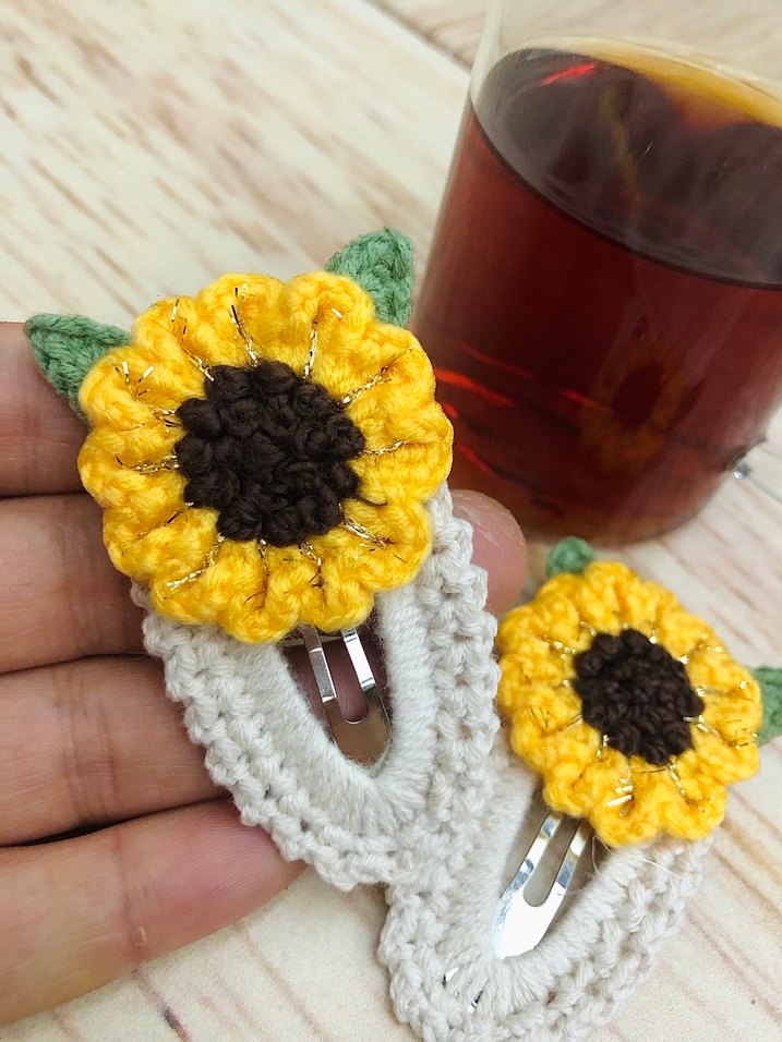Örgü Ayçiçeği Desenli Çocuk Toka Seti