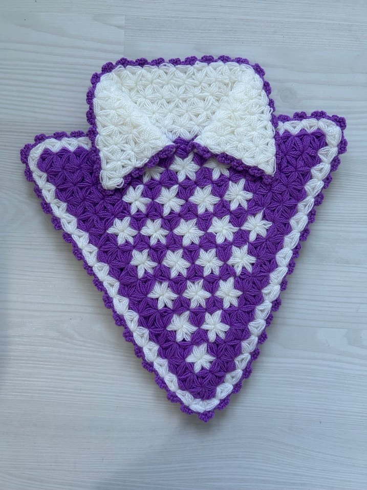 Mor ve beyaz renklerde, el yapımı desenli yumuşak ve renkli banyo süngeri.