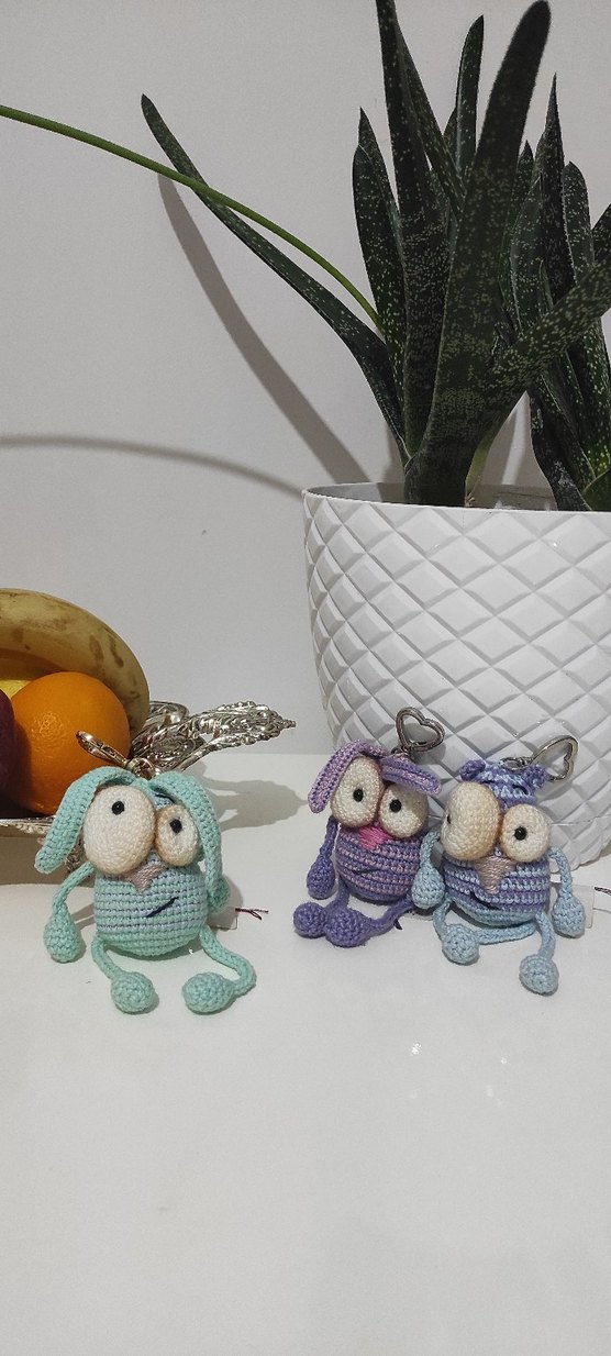 Pastel renkte örgü baykuş anahtarlıklar, rahat bohem tarzında renkli ve benzersiz tasarımlar sunar. Retro dokunuş katmak için ideal.