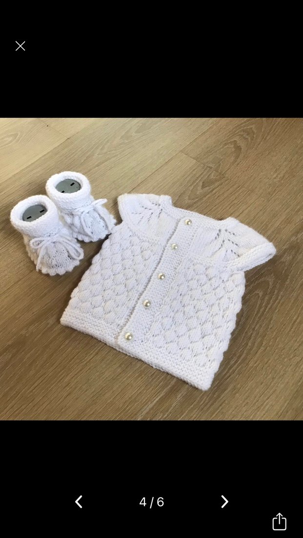 Örgü bebek yeleği ve patik takım beyaz