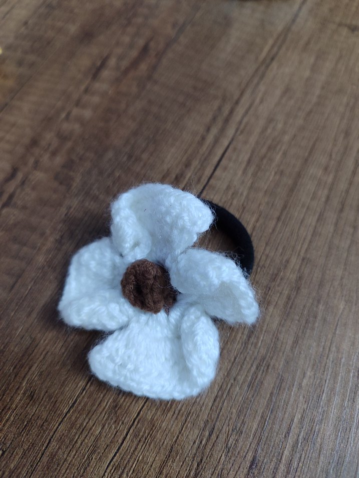 Örgü Beyaz Çiçekli Çocuk Saç Lastiği