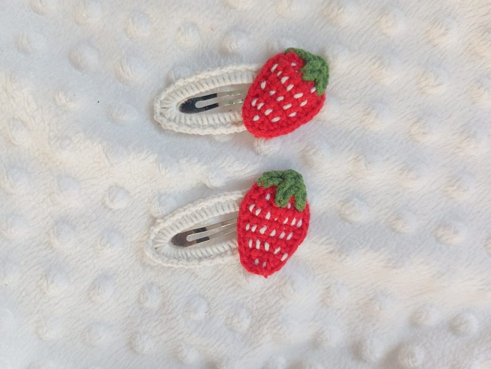 Örgü Beyaz Çilek Desenli Çocuk Toka Seti
