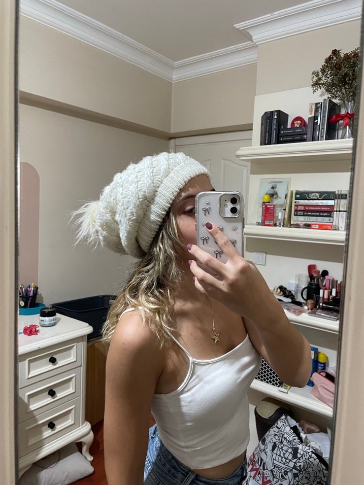 Beyaz örgü kadın bere, rahat ve bohem tarzıyla retro bir görünüm sunar. Duruşunu ekledim, hiç kullanılmadı.