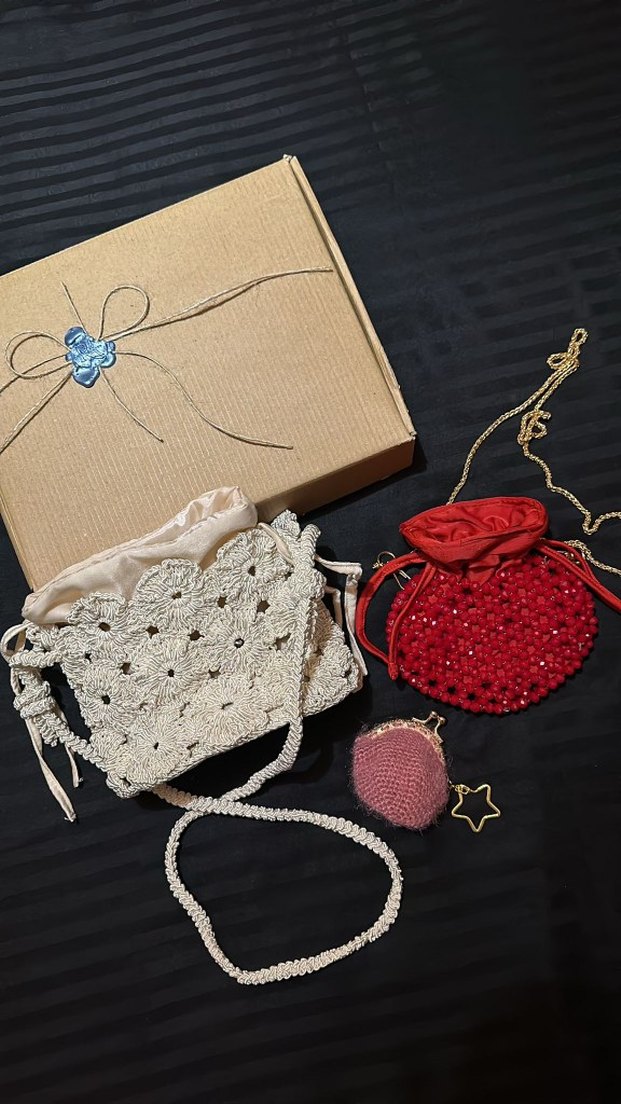 Örgü Beyaz Kadın Çanta