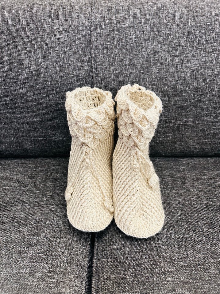 Yumuşak örgü kumaştan üretilmiş krem kadın ev terliği, sade ve rahat tasarıma sahip, el örmesidir hiç kullanılmamıştır. 38 numaraya kadar rahatlıkla kullanılabilir.