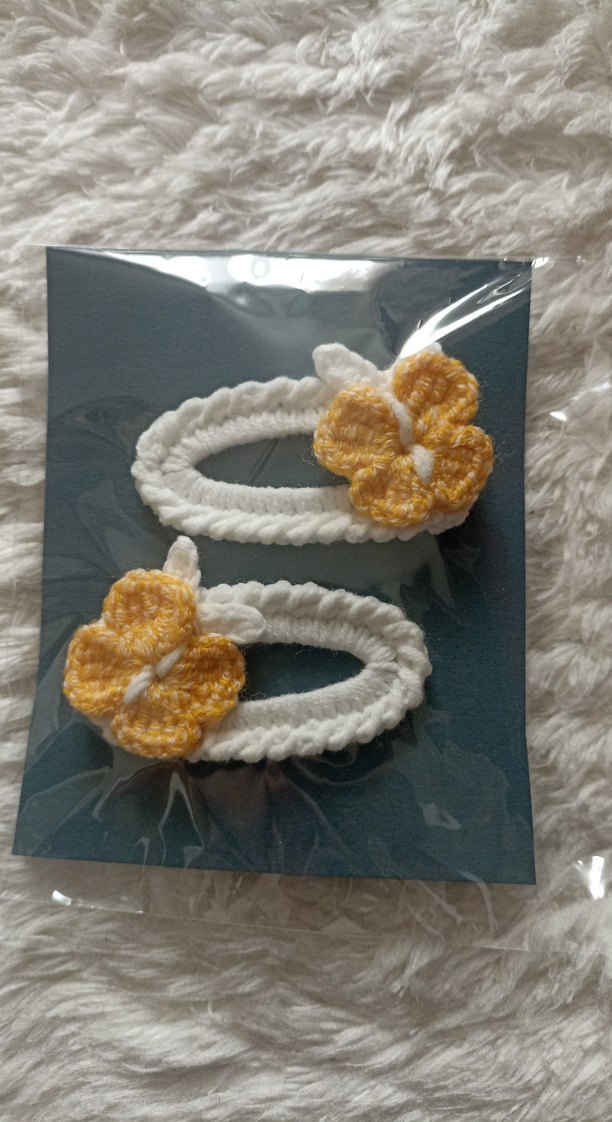 Örgü Beyaz Renkli Çiçekli Çocuk Toka Seti