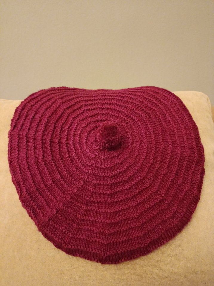 Bordo renkli, örgü dokulu, küçük ponpon detaylı, renkli ve bohem tarzda kadın bere Atkı eldiven