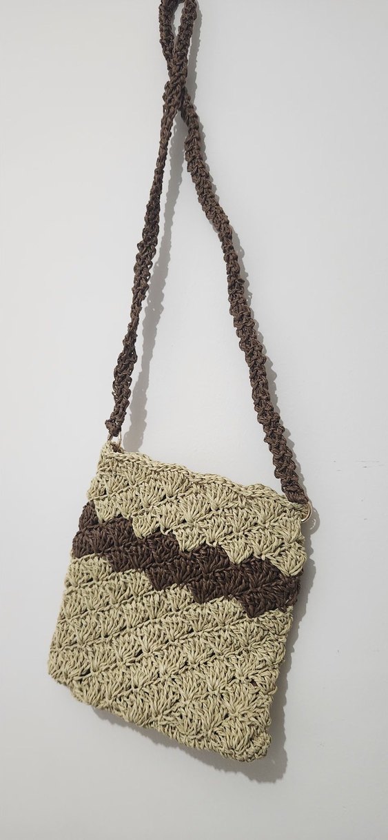 Bohem tarzda, örgü kumaştan yapılmış kahverengi ve gri tonlarında kadın çantasıdır. Uzun askısı ile kullanımı rahattır.