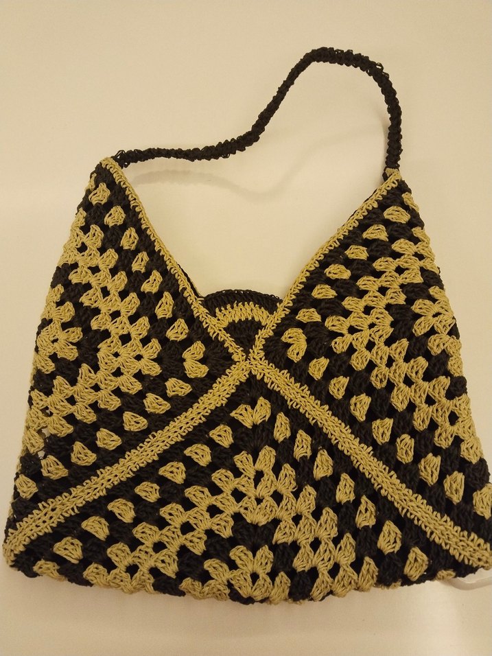 iki renk kağıt iple yeni örülmüştür ölçüleri fotoda mevcuttur içi astarlı ve çıt çıtçıtlıdır yeni örüldü.#kagit ip canta