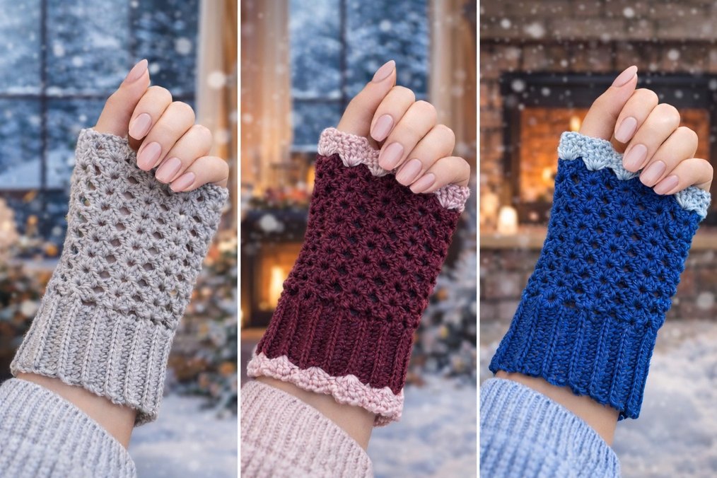 renkli, örgü dokulu bohem tarzda kadın eldiveni. Oya detaylarla sıcak ve rahat bir görünüm sunar.