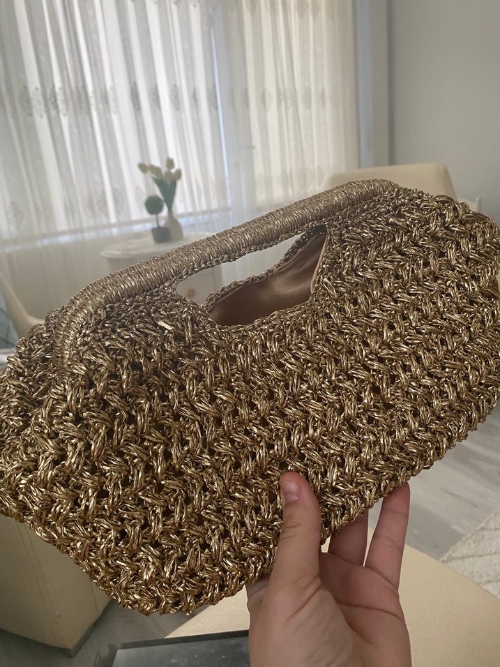 Sipariş üzerine örüyorum Parlak kahverengi örgü dokulu, bohem tarzda kadın çantasıdır. Rahat sapı ve desensiz yapısıyla retro Paris havası verir. Günlük kullanıma uygundur.